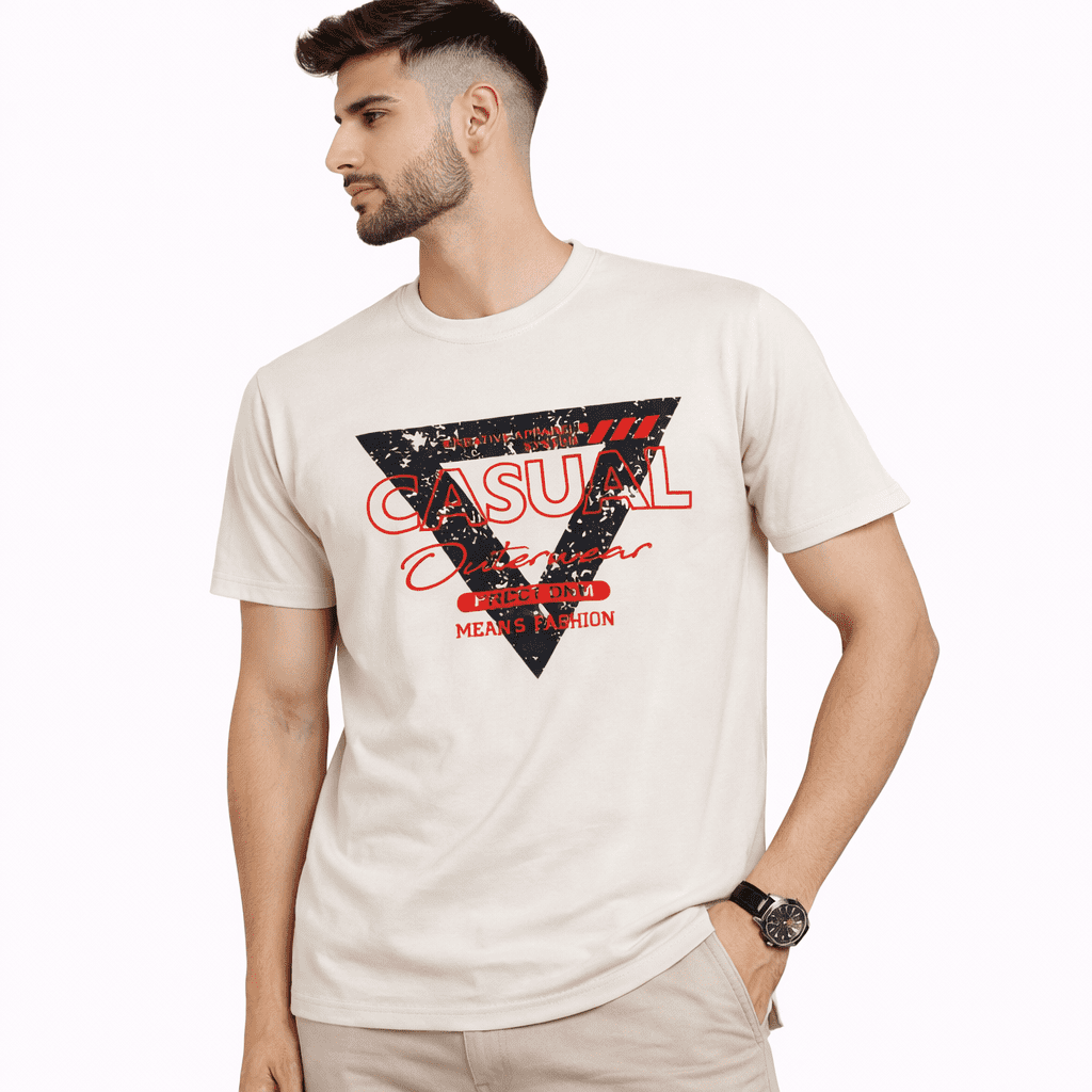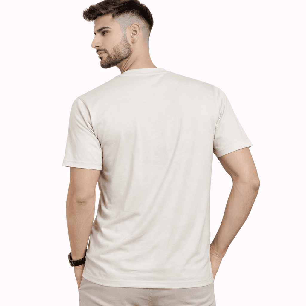 Designed with a classic round neck and half sleeves, this T-shirt features a comfortable regular fit that allows easy movement throughout the day. The straight hemline and lightweight fabric make it easy to pair with jeans, joggers, or casual trousers for a relaxed and stylish appearance.